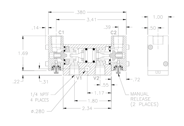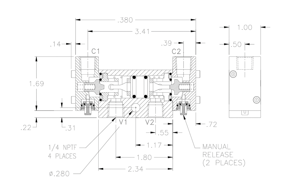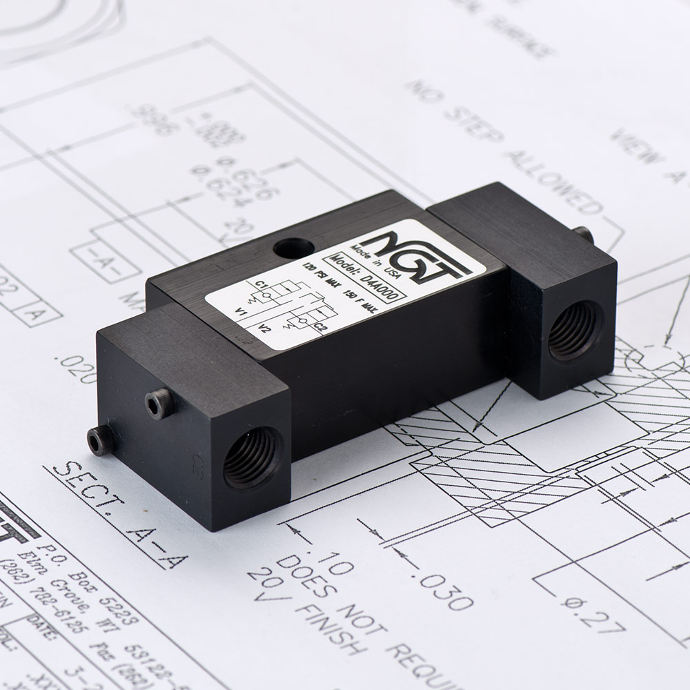 In the event of a pressure loss this unique valve maintains cylinder position by locking air in both cylinder ports. Eliminate drift due to leaky spool valves.