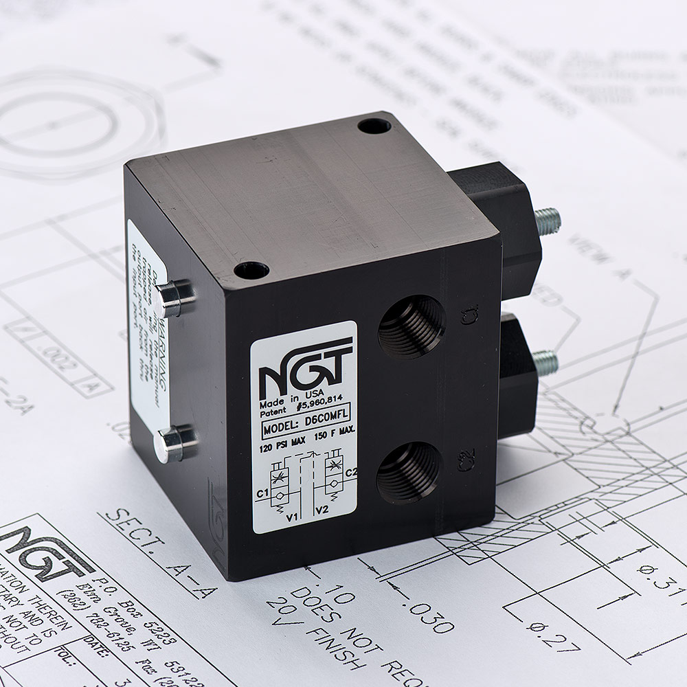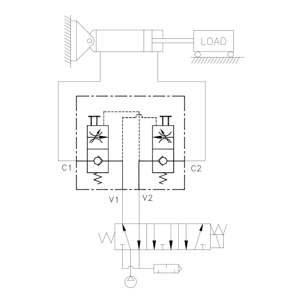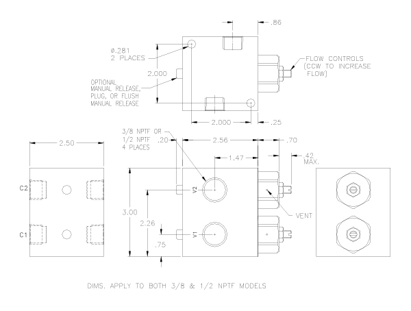In the event of a pressure loss this unique valve maintains cylinder position by locking air in both cylinder ports. The internal flow controls meter air out of the cylinder. A manual release is available to release trapped air from both ports independently.
