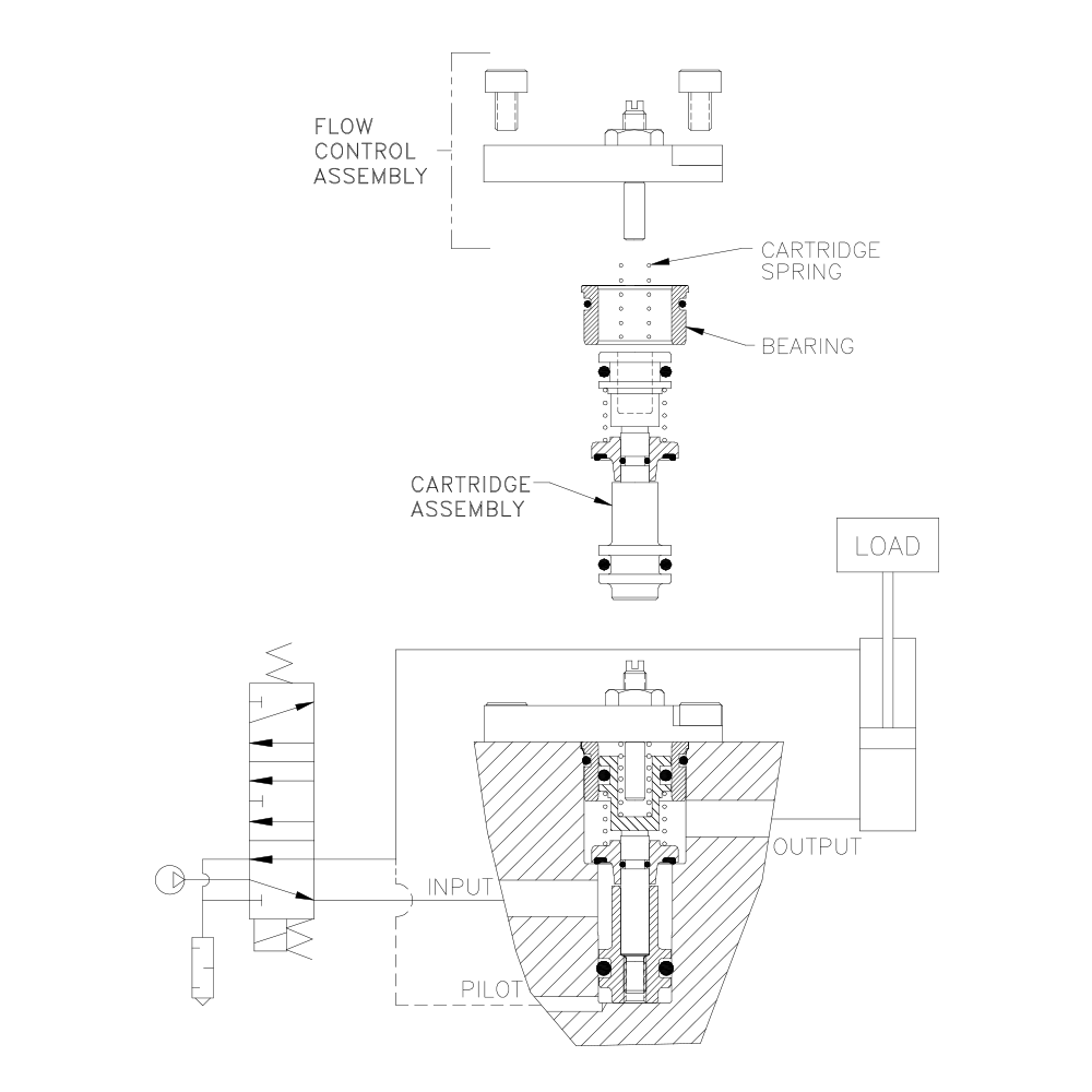 Lock your pneumatic device in position when a pressure drop or total loss of pressure occurs. Control the speed of the air device with the flow control.