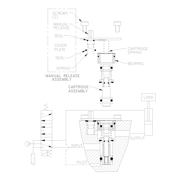 Lock your pneumatic device in position when a pressure drop or total loss of pressure occurs. Insert a cartridge assembly into a machined cavity and attach a cover for easy assembly. The manual release exhausts trapped air to atmosphere.