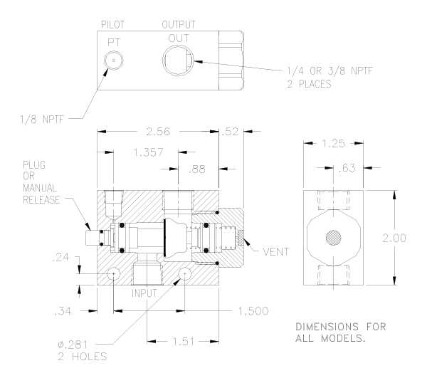 Model No. | 1/4 NPTF | 3/8 NPTF |