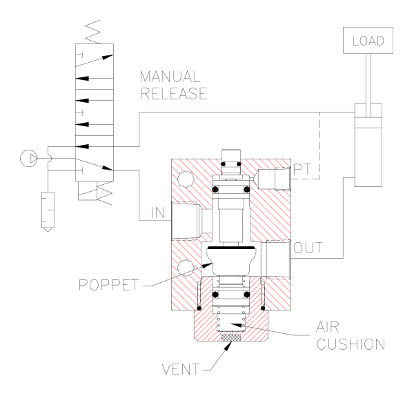 Lock your pneumatic device in position when a pressure drop or total loss of pres- sure occurs. Manual release for exhaust- ing trapped air before maintaining the system (OSHA Requirement).
