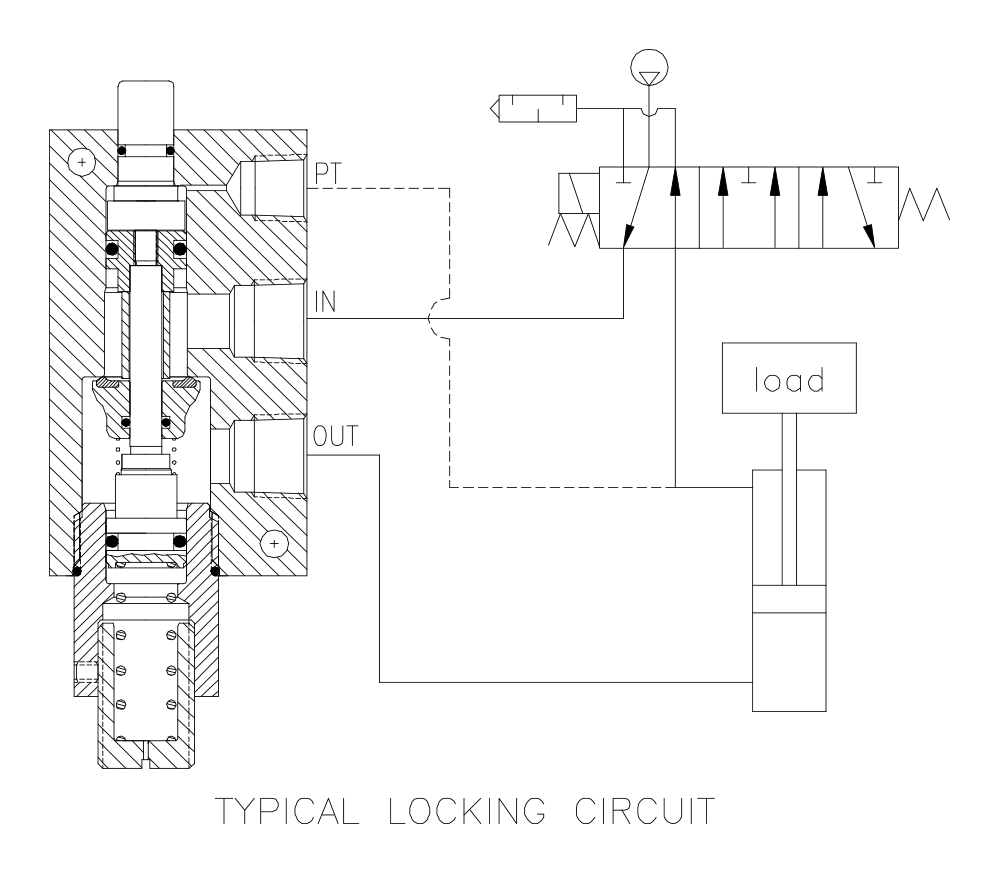 Locks any pneumatic device in position when a pressure drop or total loss of pressure occurs. Standard pilot-operated check valves will not close fast enough when back pressure is present in the pilot line. Increasing the spring pressure causes the valve to close before all the air exhausts, resulting in faster stops.