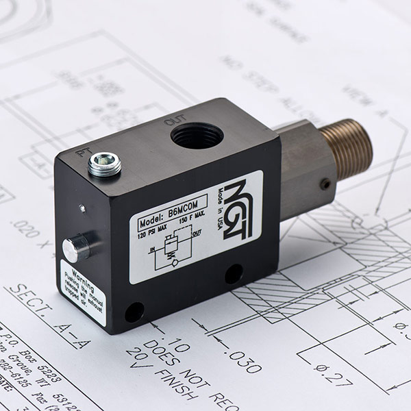 The counterbalance valve will hold a load in position until pressure or an external force is applied to move the load. Turning the adjusting screw clockwise will increase the load carrying capacity of the valve. Optional manual and flush manual release.